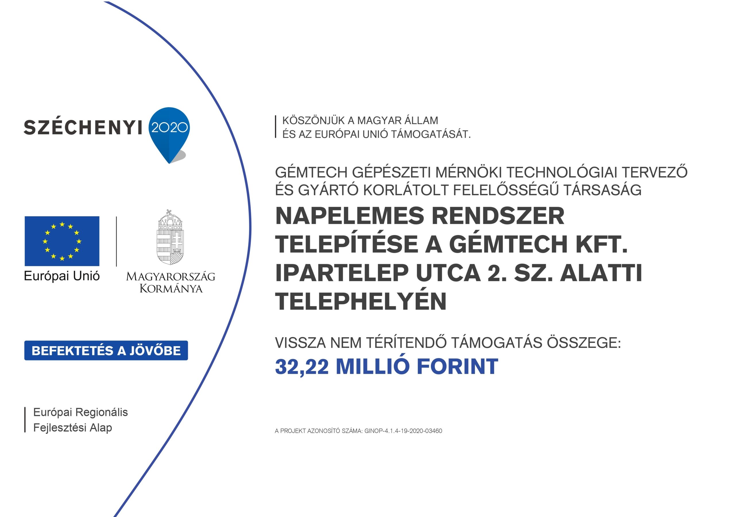 Napelemes rendszer telepítése a GÉMTECH Kft. Ipartelep utca 1. sz. alatti telephelyén